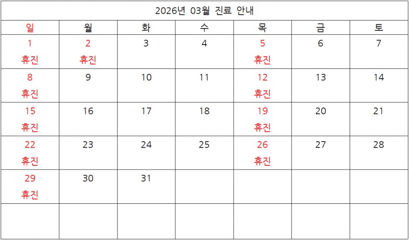 2026년 03월 진료 및 휴진 안내