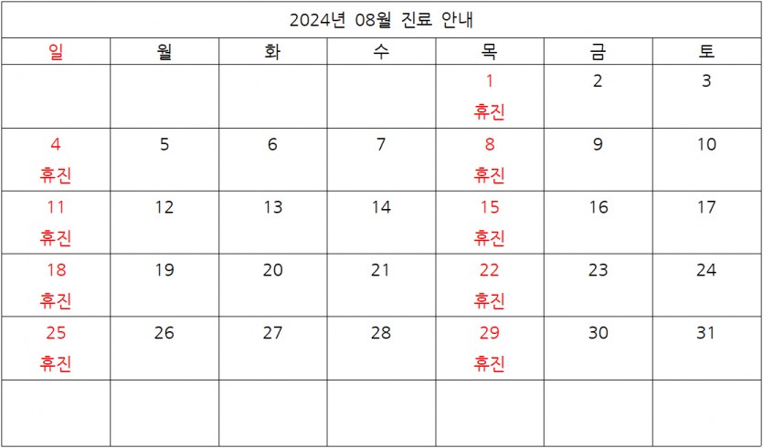 2024년 08월 진료 및 휴진 안내