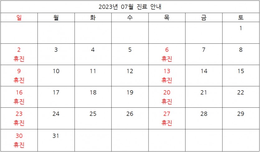 병원 진료 예약시 일정을 참고해주시기 바랍니다.
