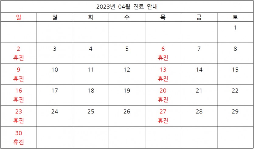 병원 진료 예약시 일정을 참고해주시기 바랍니다.