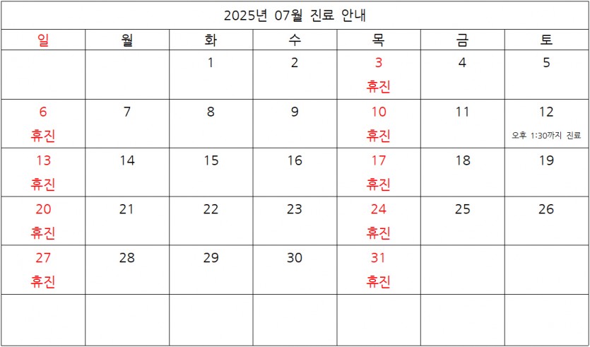 병원 진료 예약시 일정을 참고해주시기 바랍니다.