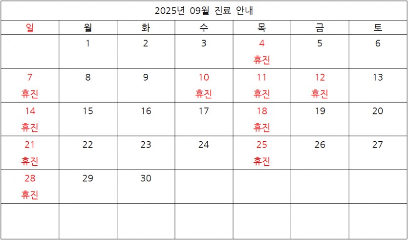 병원 진료 예약시 일정을 참고해주시기 바랍니다.