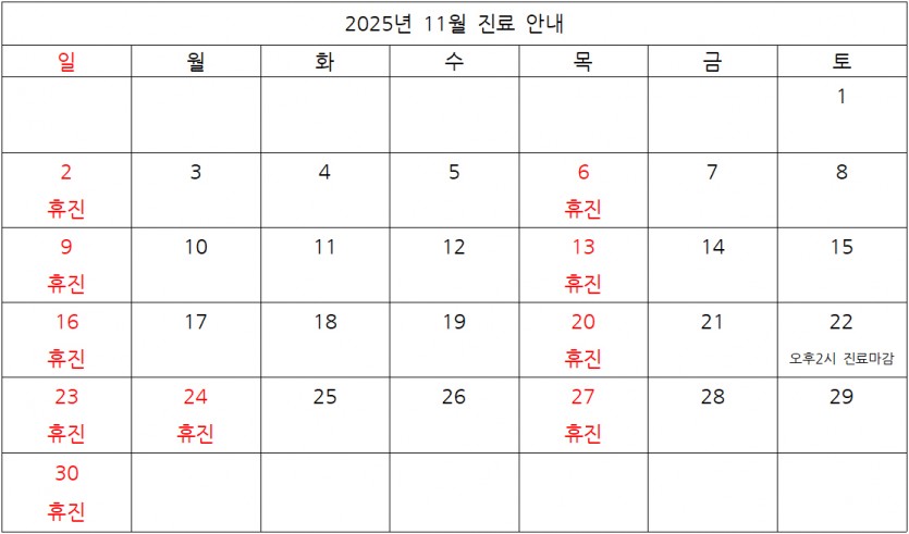 병원 진료 예약시 일정을 참고해주시기 바랍니다.