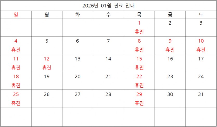 병원 진료 예약시 일정을 참고해주시기 바랍니다.