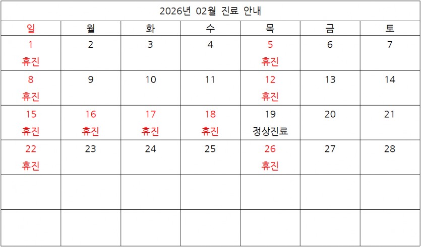 2026년 02월 진료 및 휴진 안내