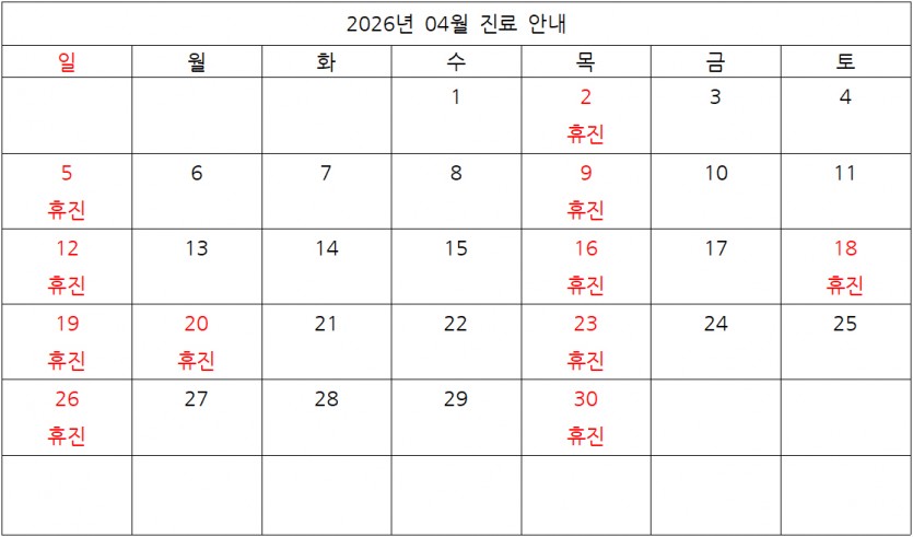 2026년 04월 진료 및 휴진 안내